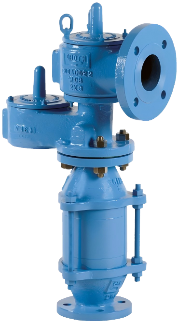 8820A呼吸阀阻火器组合带有连接排放管道的法兰,而且有格鲁斯产品独特的气垫式密封阀座。采用优质含氟聚合物膜片,最大限度降低粘性介质和大气中的水蒸气可能造成的粘连。自排水式阀体和无积水阀座,防止介质积聚或结冰。